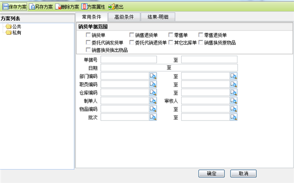- 点击“购销存/受托代销/受托代销结算单”菜单项,进入销货数据查询条件页面,如下图所示: