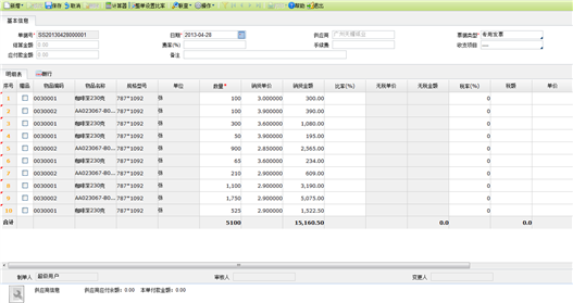 图7-2 销货数据结算录入页面