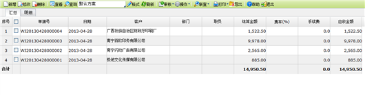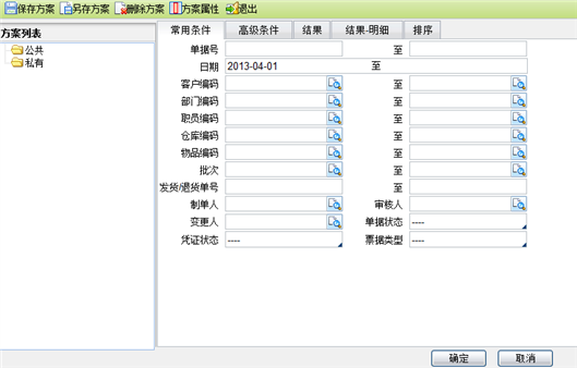 - 输入查询条件或选择已保存的查询方案,点击【确定】按钮,系统按条件过滤,并回到列表页面显示查询结果。