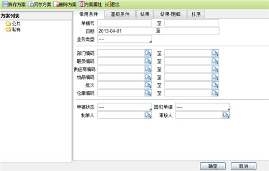 - 单据状态:单值条件,下拉选择:空、暂存、未审核、已审核。