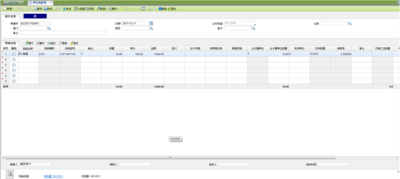 现存量:显示光标所在物品行的现存量,光标换行后更新。以链接形式显示,可通过点击链接打开联查—库存查询功能,查看当前光标所在物品行的库存明细。界面编辑状态如果光标不在明细表行通过链接打开联查—库存查询功能,显示所有物品的库存明细。