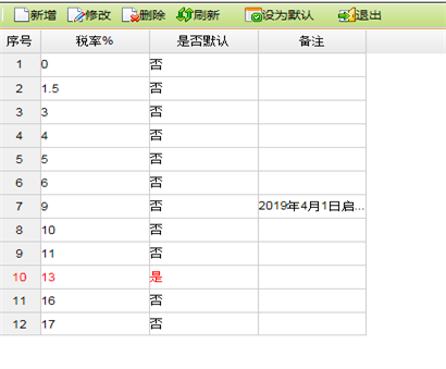 【菜单路径】我的系统/基础数据/增值税税率维护