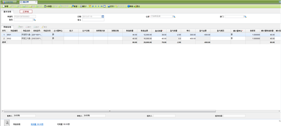 盈亏数量:现场盘点数大于库存账面数量为盘盈,小于账面数量为盘亏。系统根据盘点数量-账面数量自动计算,盘盈为正,盘亏为负。