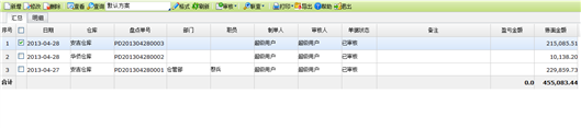 - 点击“购销存/库存/盘点单列表”菜单项,进入盘点单列表页面,如下图所示: