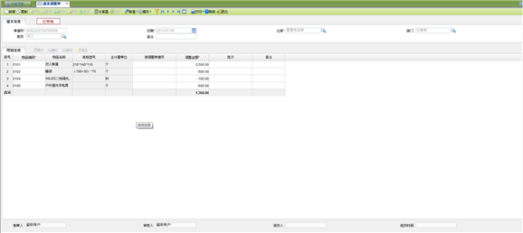 批次:批次管理物品才可以录入(非必录),下拉参照。被调整单号为空时,参照表头仓库+明细表物品在累计库存表中的批次;被调整单号不为空时,根据被调整单号从出入库单子表中带入批次。清空或修改表头仓库、明细表物品时,批次清空;清空被调整单号时,批次清空。先进先出批次管理物品的批次必录。