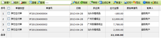 显示其它应付单的部分资料的详细列表,可以有选择性地进行修改、删除等操作