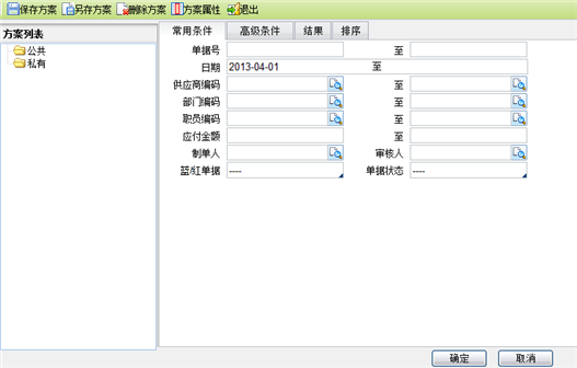 - 录入条件,点击确定,系统按查询条件过滤,在单据列表界面中显示查询结果。