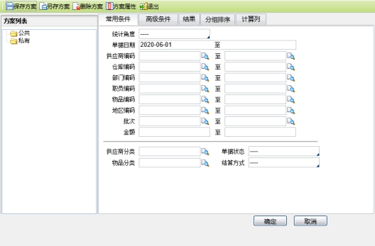 查询方案:如果查询条件的方案列表中保存了查询方案,可以下拉选择不同的方案进行查询。
