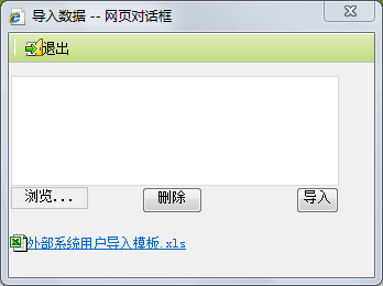 【第一步】在外部用户管理列表界面,点“导入/从Excel”菜单,系统弹出导入界面,如下图所示: