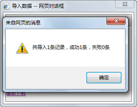 【第四步】点〖浏览〗按钮,选择外部用户导入模板文件,点导入按钮,系统给出导入结果信息提示,如下图所示:确定后即完成外部用户的导入。