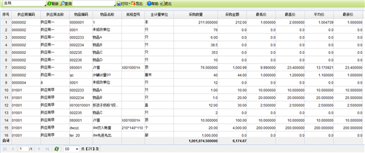 - 输入查询条件或选择已保存的查询方案,点击【确定】按钮,进入供应商供货价格分析显示页面,如下图所示:
