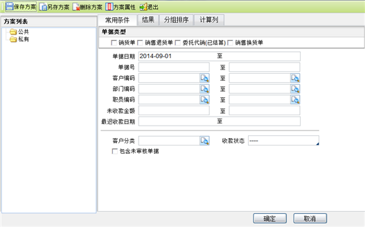 【主要功能】收款结算方式按单据时,查询销售业务单据收款情况,使用户对单据的回款情况进行分析。