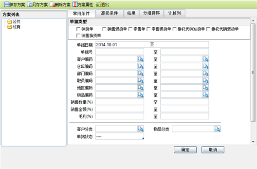 - 点击“购销存/销货查询/销售结构分析”菜单项,进入销售结构分析查询条件设置页面。