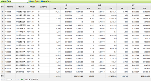- 输入查询条件后,点击【确定】按钮,系统进入物品结存价格表查询页面,如下图所示: