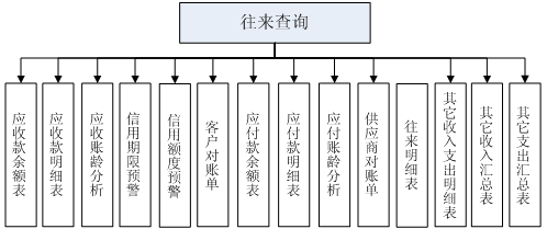 往来查询指对所有与往来业务有关的账表进行查询,包括应收款余额表、应收款明细表等,如下图所示: