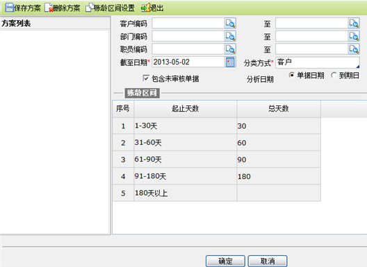 【主要功能】分析客户、部门、职员应收款余额的账龄区间分布。
