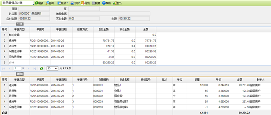 - 按明细情况对账,则按供应商的业务依次顺序进行列表对账。