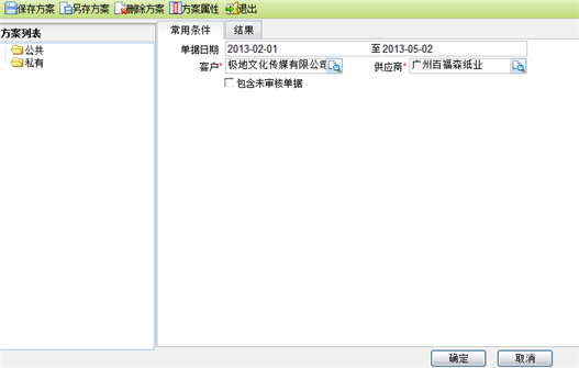 - 点击“购销存/往来查询/往来明细表”菜单项,进入往来明细表查询条件设置页面,如下图所示: