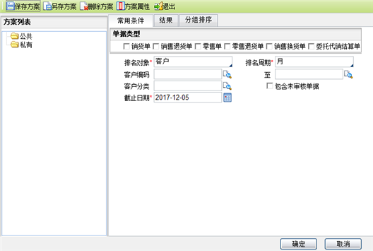 排名对象:在查询条件输入页面,下拉有客户、客户分类可选择。