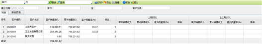 【主要功能】反映一段时期内客户或客户分类的贡献率(客户消费占销售收入比例)排名,并提供上期、上上期对比分析。