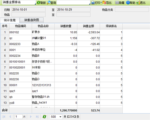 【主要功能】反映一段时期内物品销量或销售额的倒序排名。