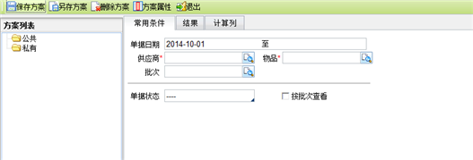 1.点击“购销存/受托代销/受托代销物品台账”菜单项,系统弹出受托代销物品台账查询条件设置页面,如下图所示: