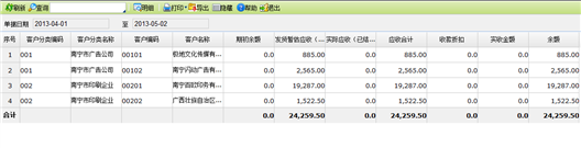 【主要功能】按客户、客户分类等查询一定期间所发生的委托代销业务应收、收款以及余额情况,包括未结算的暂估应收。