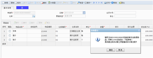 物品:带入单据中第一个取不到成本的物品