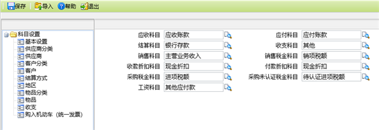 相关功能:物品科目设置、对方科目设置、费用科目设置、工资科目设置