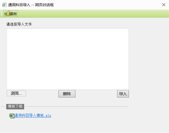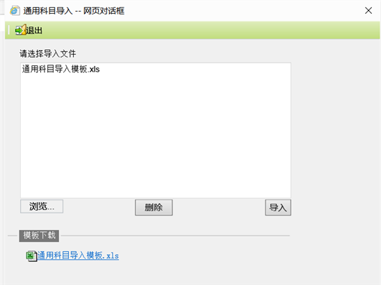 - 支持科目设置的导入。点击【导入】按钮,进入导入数据页面,如下图所示: