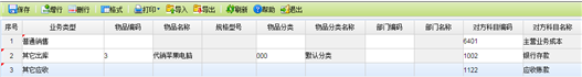 每种业务类型的对方科目设置可以按物品、物品分类、部门等的其中一项或多项进行设置明细科目;或统一进行设置,即不选择任何项目,科目统一指定一个科目。