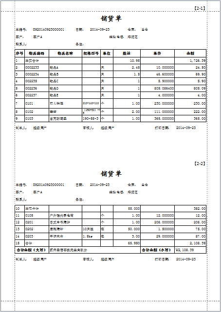 每页模板数:每张打印纸上打印的页数。例如,需要在1张A4纸上打印2页单据,此处应设置为2,效果如下图所示: