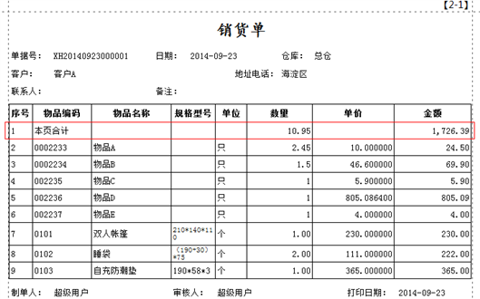 明细行数:每页打印的明细行数,其中包括数据行、本页合计行、总计行,行数超过的单据会按此设置进行分页打印。