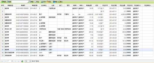 - 设置好条件后,点击【确定】按钮,系统显示符合条件的业务单据及其生成凭证的信息列表,如下图所示: