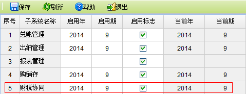 【主要功能】启用财税协同子系统,设置启用年与启用期。