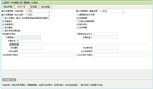 - 开票复核人:若发票票面的复核人需要显示,则可通过此参数录入默认的开票复核人,开票时自动传此复核人进行开票;此参数与传递审核人不可同时使用,当发票复核人与单据审核人不是同一人时,使用开票复核人参数。