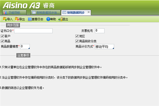 【主要功能】将防伪税控系统中的客户、商品信息导入本软件中。导入功能只能在开票系统所在电脑上登录企业管理软件后使用。