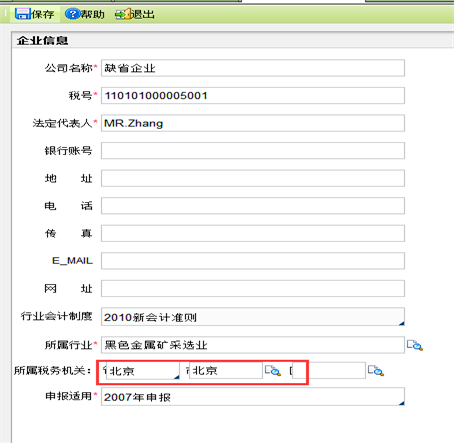 1.维护企业信息,菜单路径“我的系统/基础数据/企业信息”: