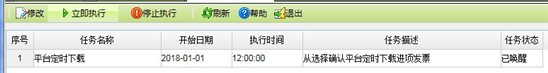 2. 修改开始日期、执行时间。系统预置了默认的开始日期为2018年1月1日,执行时间为每天中午12点;若需要修改,可根据实际需要设置具体执行时间,但需保证此时间点对应的A3服务处于启用状态。3.若使用系统预置的开始日期、执行时间,则需点击“立即执行”,将该任务唤醒。