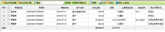 3)选中需要开票的单据,点击〖选择〗按钮,单据信息将会带到发票开具界面。如下图所示: