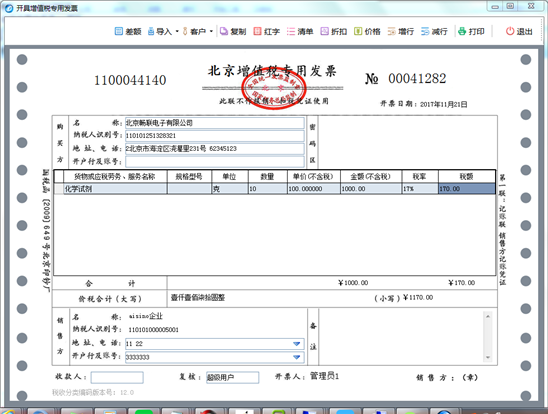 3)确认信息无误后,点击〖打印〗即可开具发票并打印。