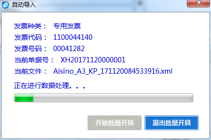3)点击〖开始批量开具〗按钮,系统将按“导入文件路径”设置自动导入单据文件,如下图所示: