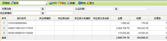 【主要功能】对进项发票按供应商税号进行汇总统计。