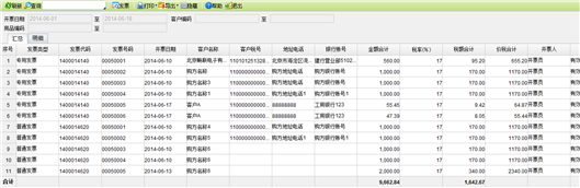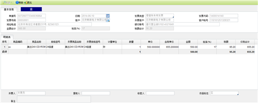 4.选择一条记录,点〖单据〗按钮,进入销项发票查看界面。如下图所示: