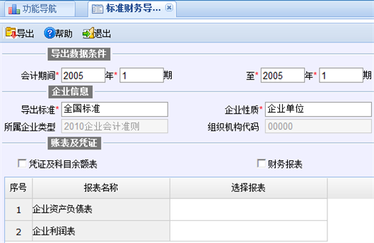 图5-1 标准财务导出页面